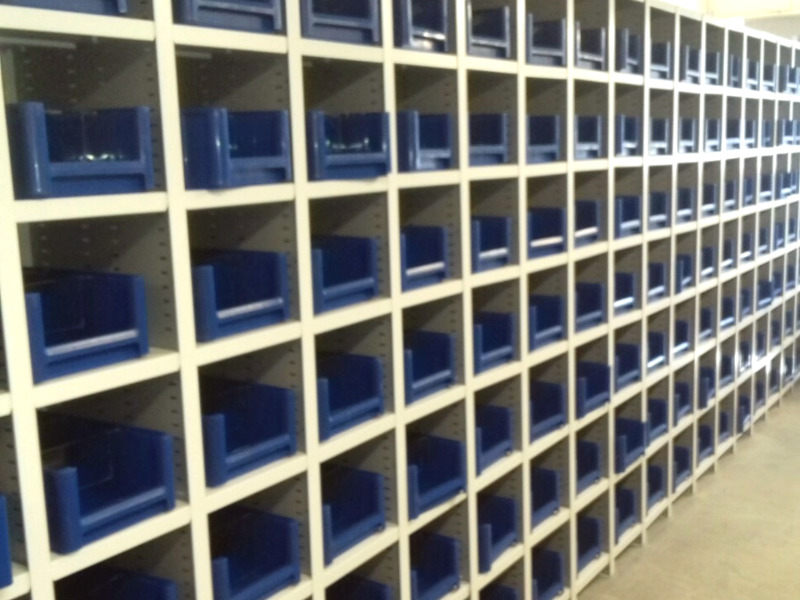 Стеллаж для адресного хранения деталей, сменного инструмента и запасных частей. Каждая ячейка, по заказу, дополняется пластиковыми лотками или ящиками.